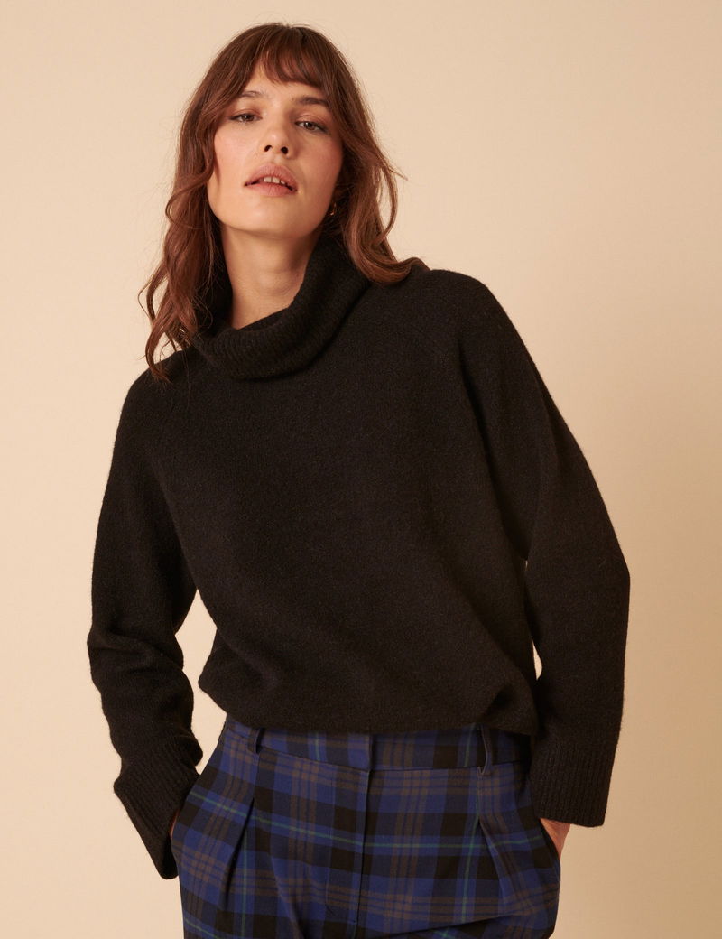 Black Roll Neck Relaxed Knitted Jumper