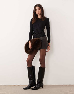 Soft and sleeveless, this black top is cut with a boat neckline. The ruching through the body creates a flattering, close fit.