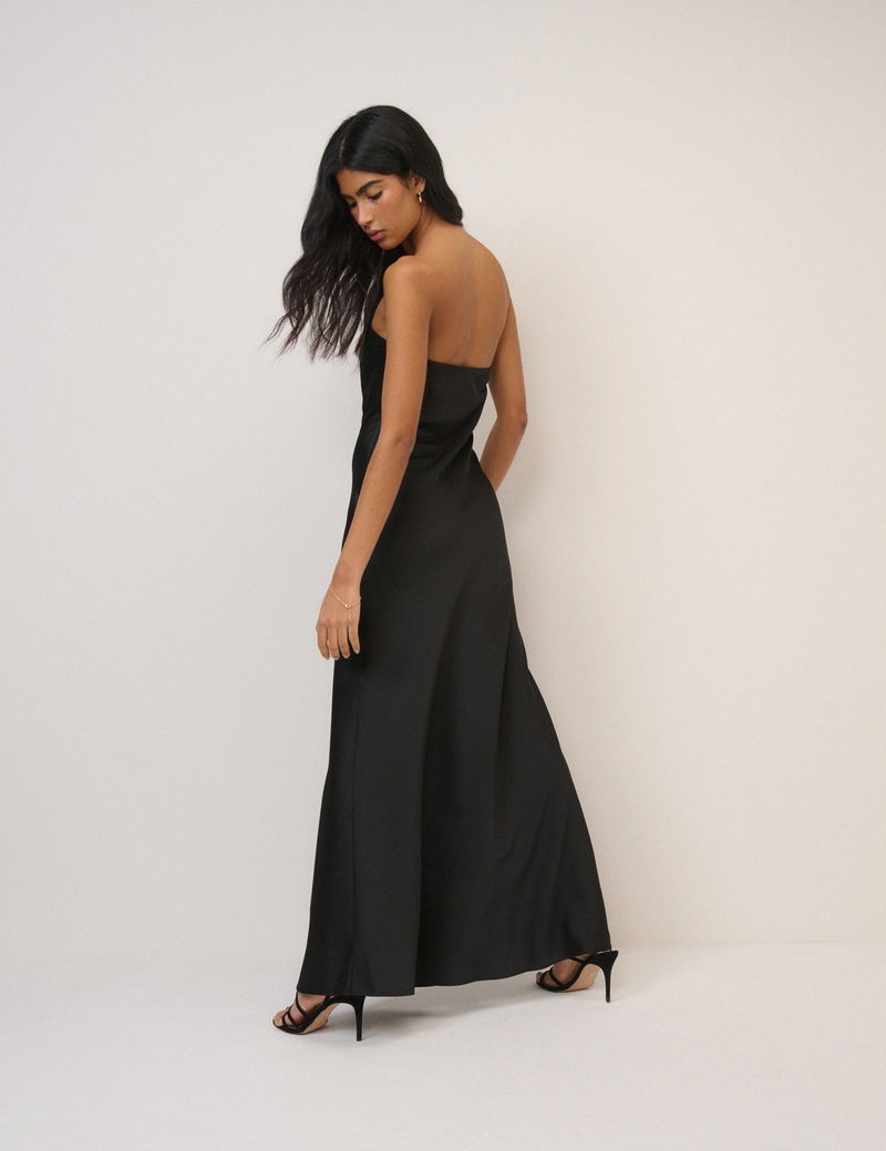 Black Satin Bandeau Arden Maxi Dress