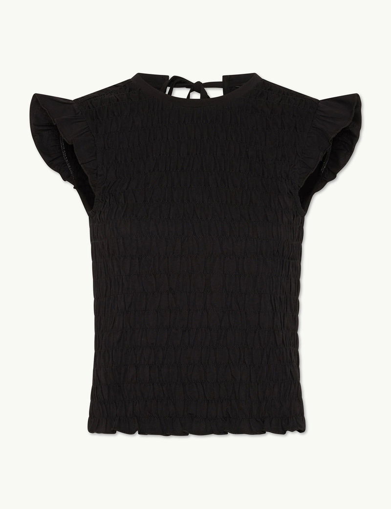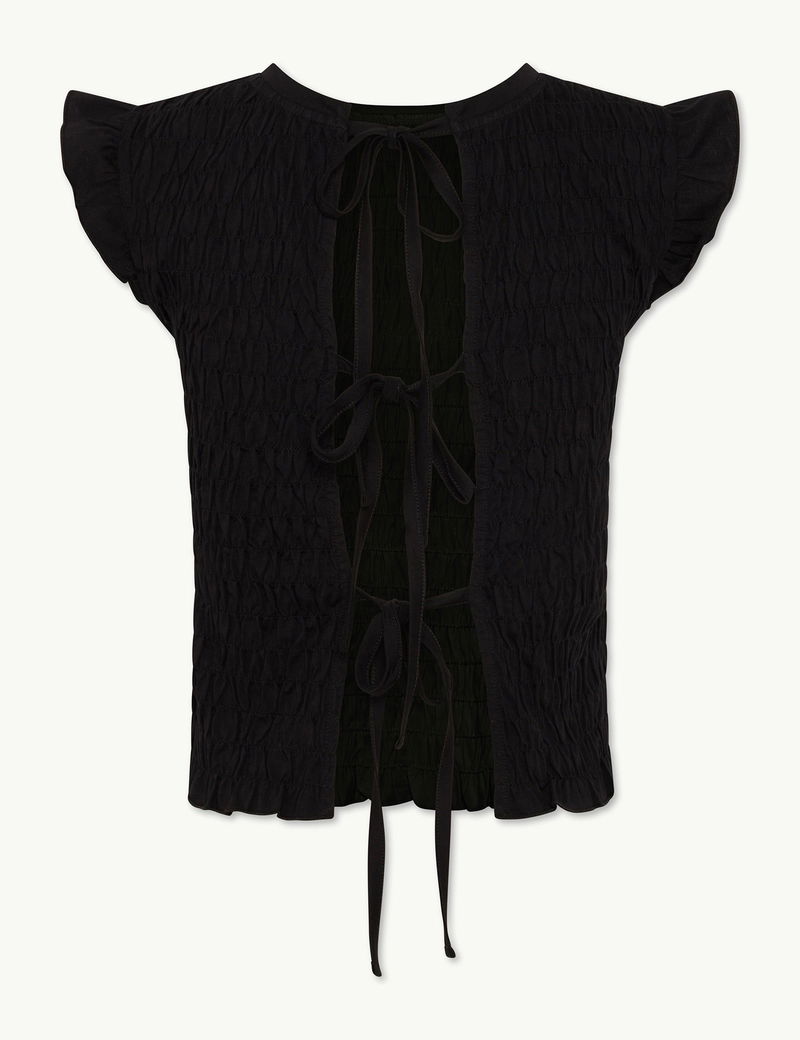 Black Shirred Tie Back Top