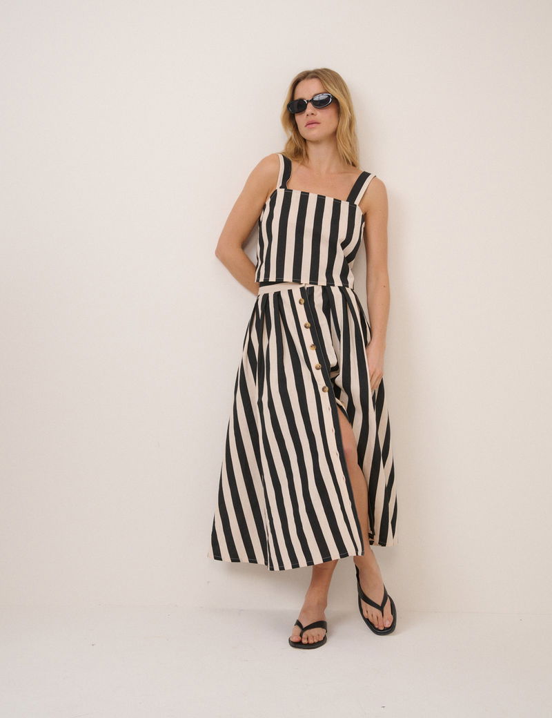 Black Striped Swing Top