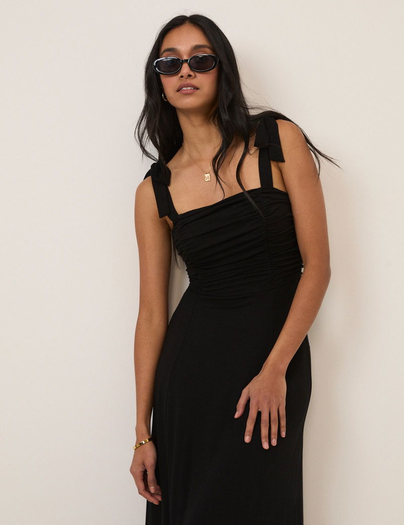Black Tie Shoulder Hattie Midi Dress