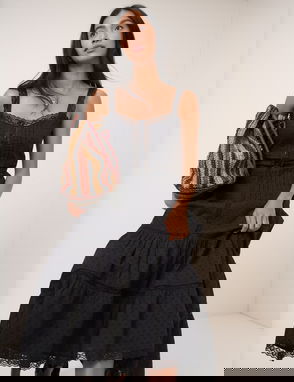 The dress that will become a go-to. Featuring in classic black, we’re obsessed with the short, ruched sleeves and relaxed skirt that skims the body. We’re styling ours with strappy sandals.