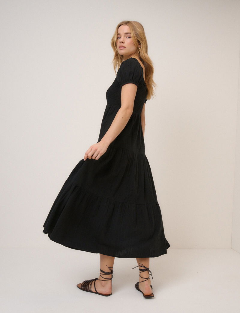 Black Tiered Everly Midi Dress