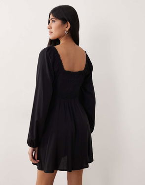 Coming in soft velvet, this black mini dress features an off-the-shoulder design with a satin bow detail. With soft seams for structure, it falls to a slim-fitting, soft A-line silhouette.