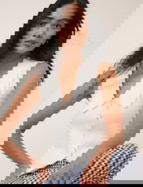 A classic with a feminine touch. With scalloped edges and a button front, this dark-wash denim waistcoat features an adjustable back belt for a flattering fit. Just add the matching jeans or skirt.