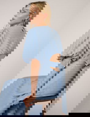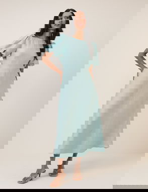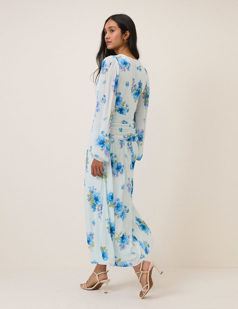 Blue Floral Long Sleeve Luna Midi Dress