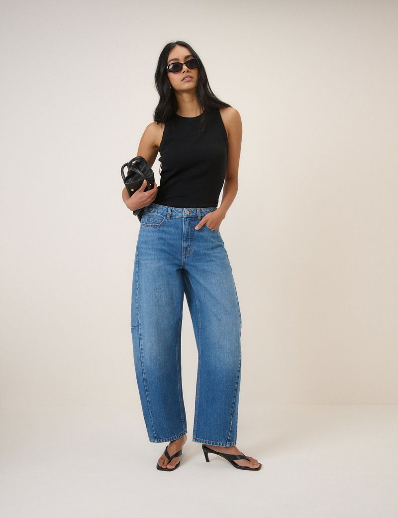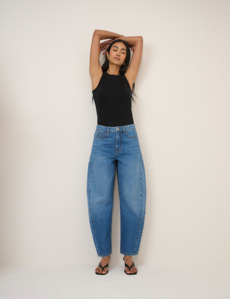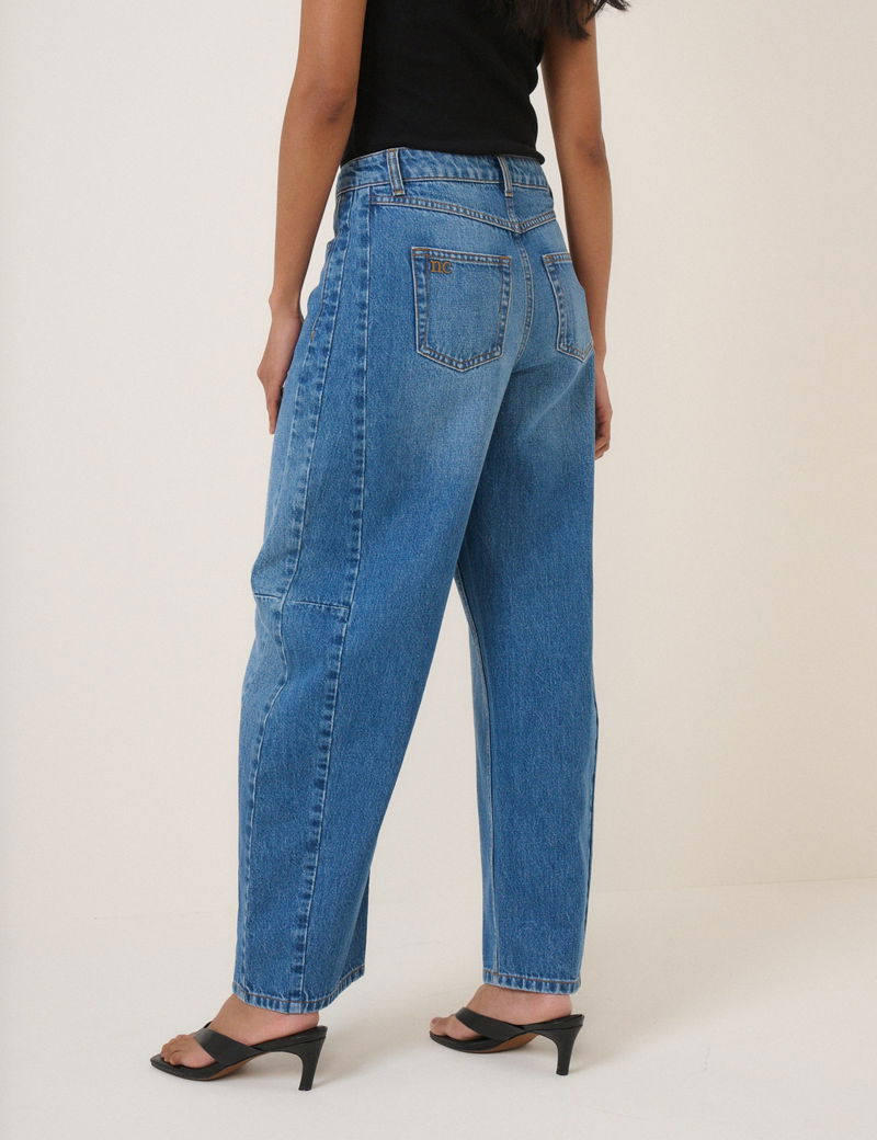 Blue Mid Rise Bethnal Barrel Leg Jeans