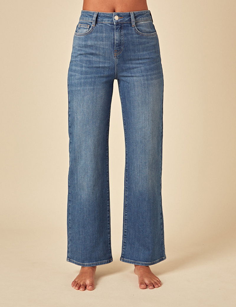 Blue Stretch Wide Leg Jeans