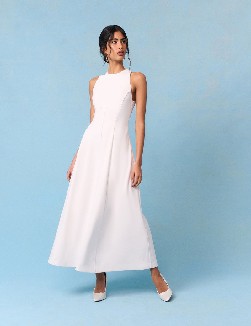 Bridal Ivory Crepe Cross Back Antonia Midi Dress