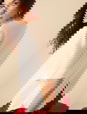 Your new favourite white top. We love the all-over broderie, flattering crew neck and oversized short puff sleeves. Wear yours with denim. Designed for a relaxed fit.