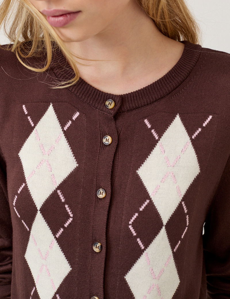 Brown Argyle Print Cardigan