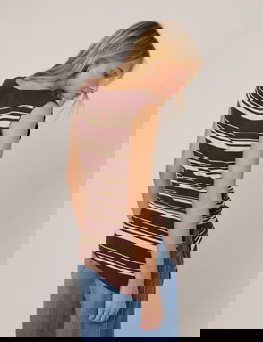 Your new favourite layer. Soft and lustrous in chocolate brown, this button-up vest is designed with a ribbed texture for all-day comfort. Layer or wear solo.