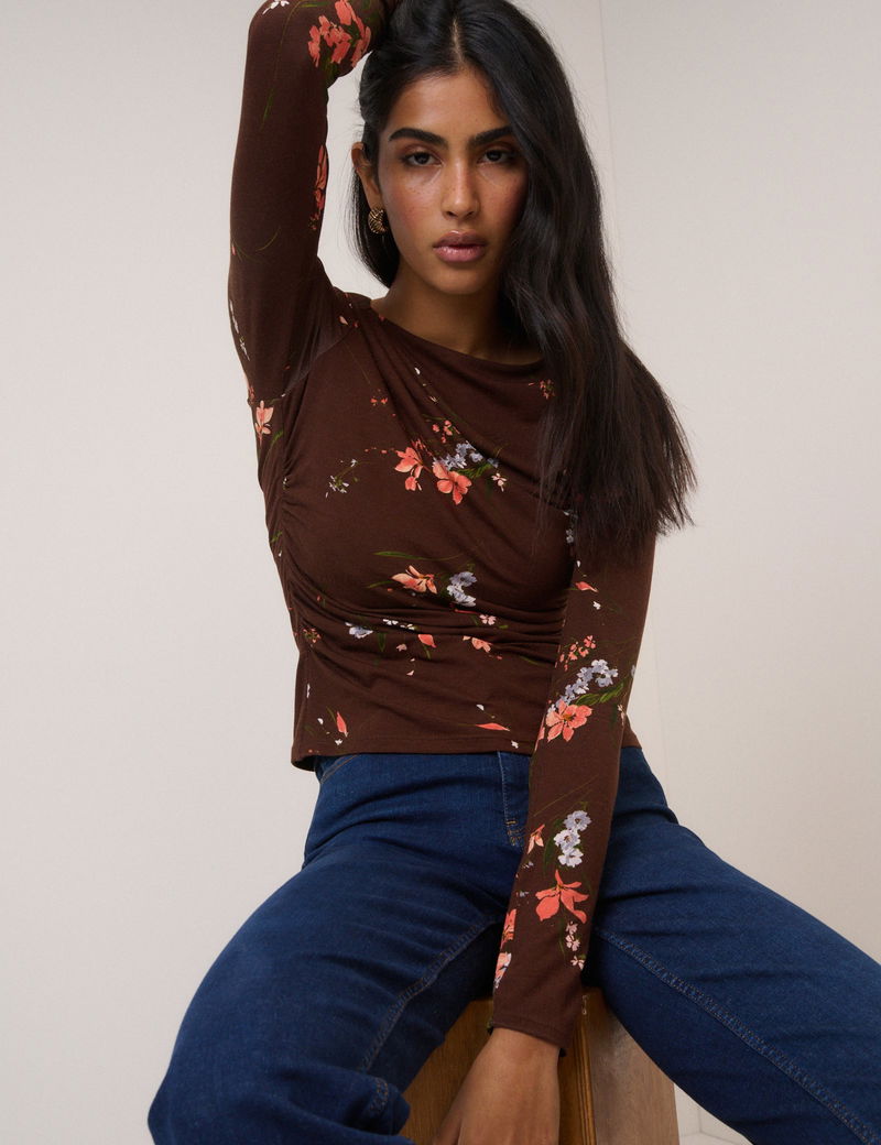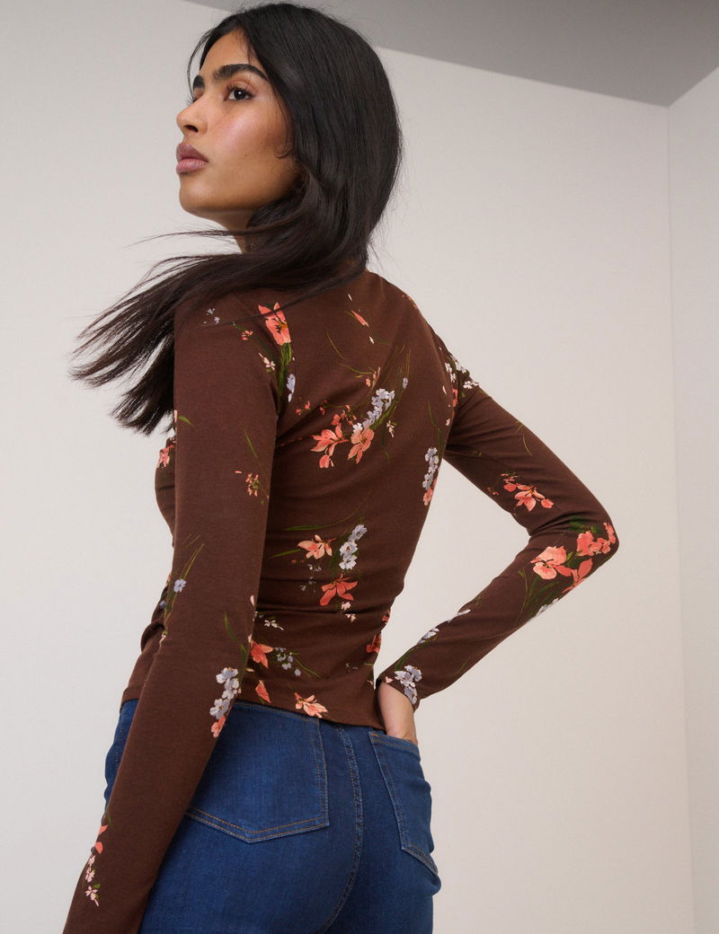 Brown Floral Jersey Top