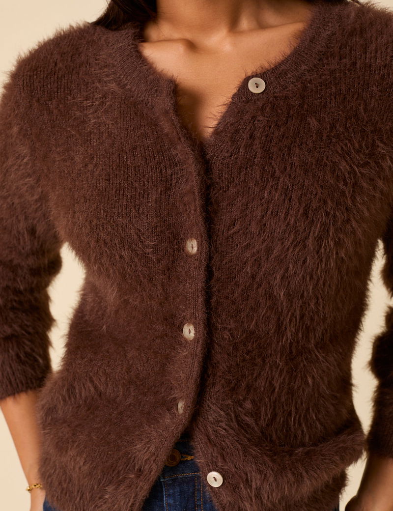 Brown Fluffy Long Sleeve Knitted Cardigan