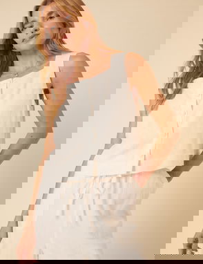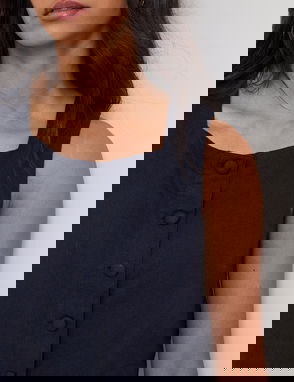 Made with at least 50% EcoVero™ and linen. EcoVero™ is a sustainable alternative to viscose, derived from renewable, sustainably-harvested wood pulp and processed in a closed-loop system that reduces toxicity of waste to almost zero. Long-lasting and certified compostable and biodegradable. Linen is made from the fibres of the flax plant. Flax is resilient and can grow in poor soil, using less water than cotton to produce.'