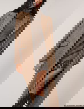 Coming in chocolate brown, this long puffer coat features an oversized collar and tie-style belt, complete with NC embroidery. Warm and quilted, cinch the waist to be as fitted as you like.