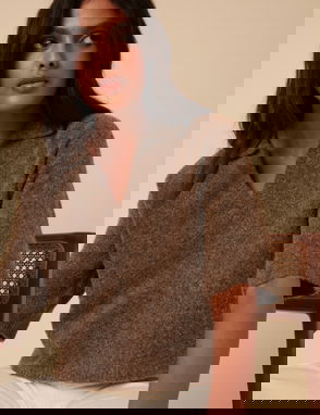 In chocolate brown, this soft knitted jumper is designed with a V-neckline and sailor collar. Relaxed through the shoulders, it’s cut to a relaxed fit with ribbed trims.