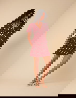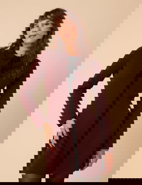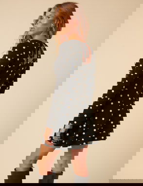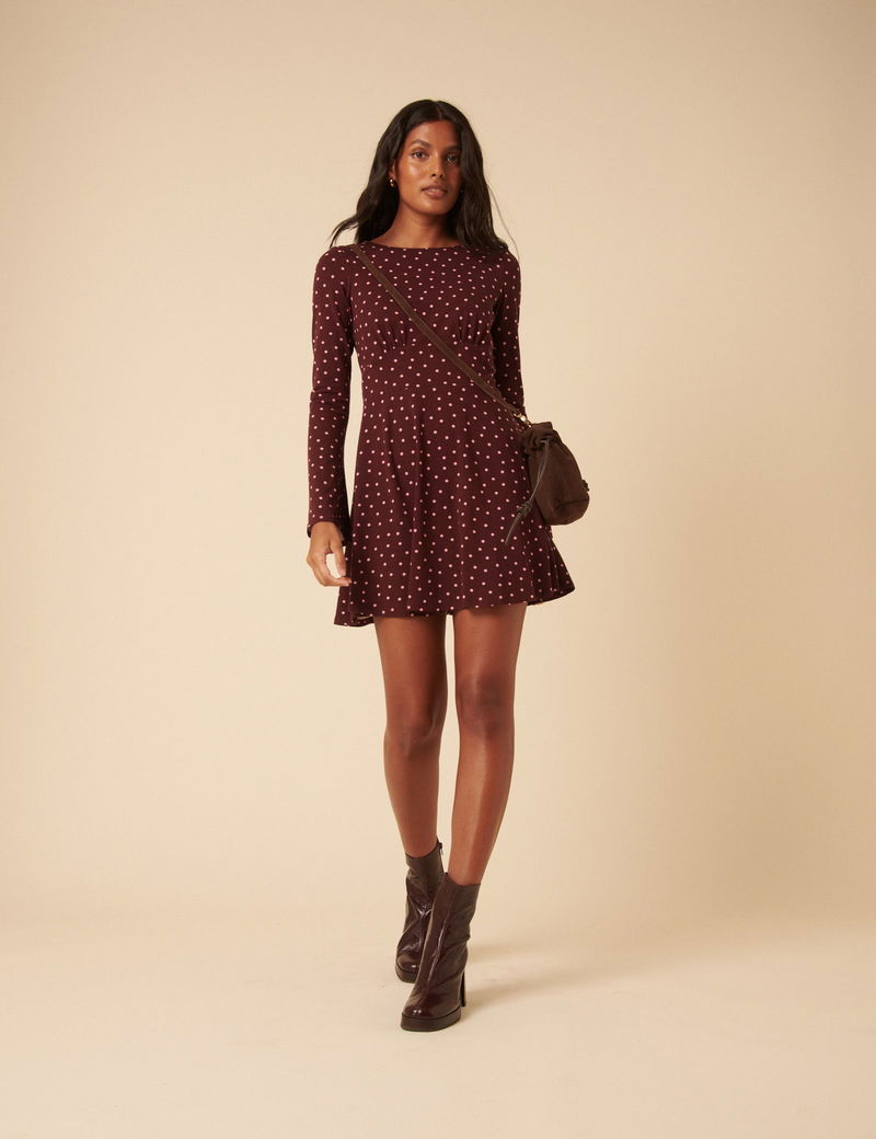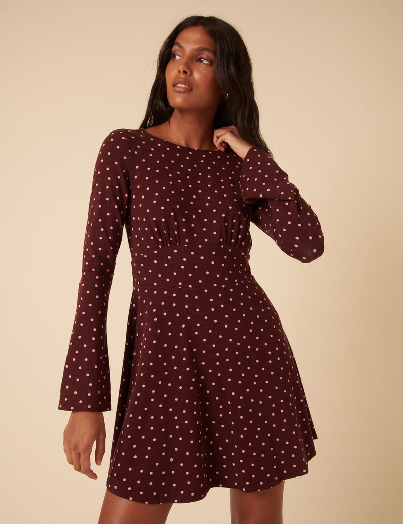 Burgundy Polka Dot Jersey Boat Neck Tate Mini Dress