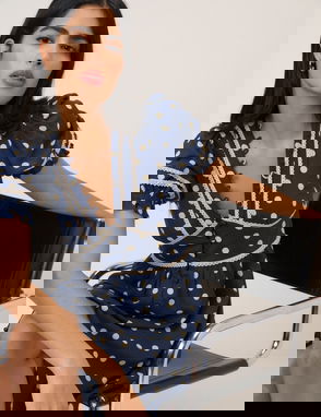 Burgundy Polka Dot Ottilie Midi Dress