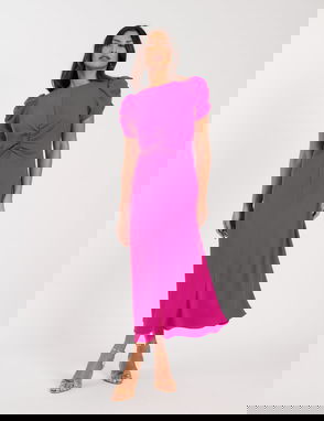 Crafted from mesh, this burgundy midi dress is designed with a pink diamond check, complete with a round neck. Cut to a slim fit, ruched detailing creates light draping over the body.