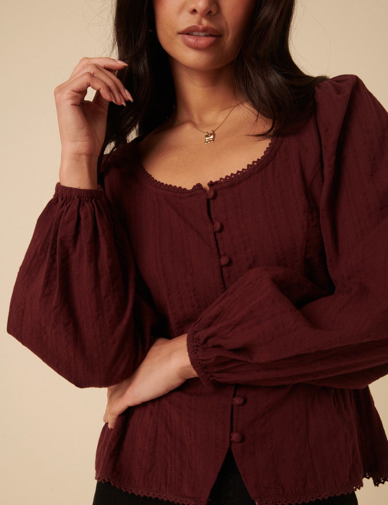 Burgundy Scoop Neck Blouse