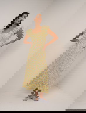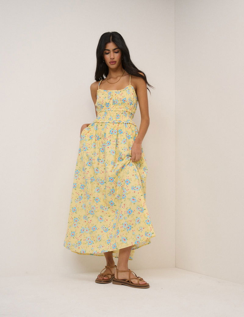 Butter Yellow Floral Alina Midi Dress