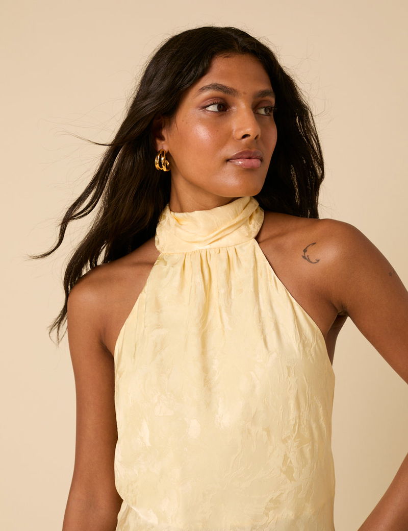 Butter Yellow Floral Jacquard Tie Neck Fifi Midi Dress