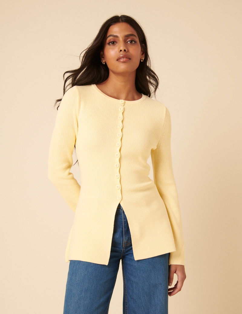 Butter Yellow Ribbed Longline Cardigan