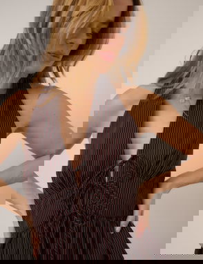 The dress of dreams. In butter yellow, this midi dress features a halter neck and shirred bodice for the perfect fit. Wear your hair up to show off the tie back detail.