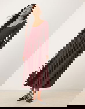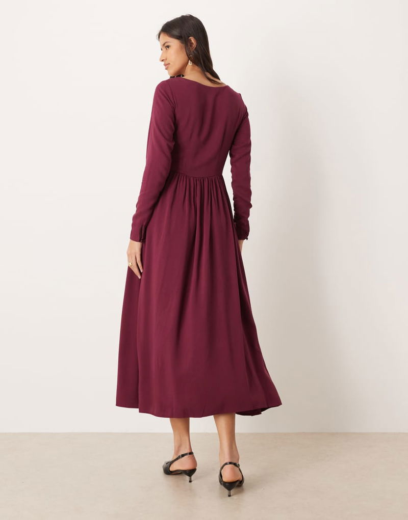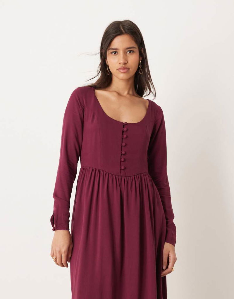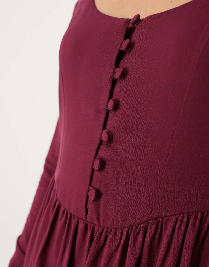 Cora Scoop Neck Button Detail Midaxi Dress In Burgundy