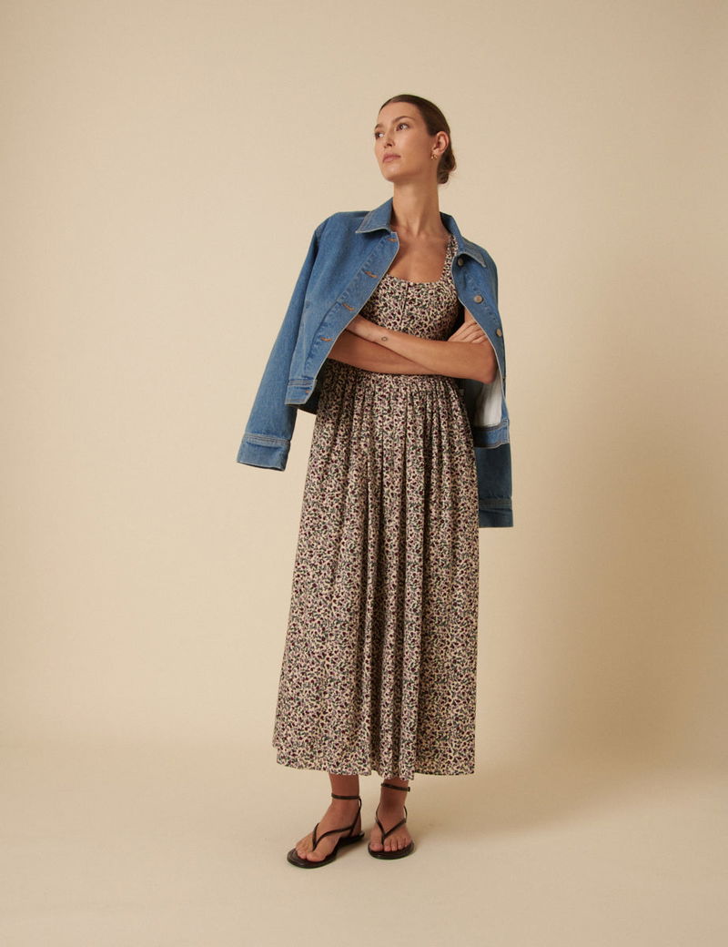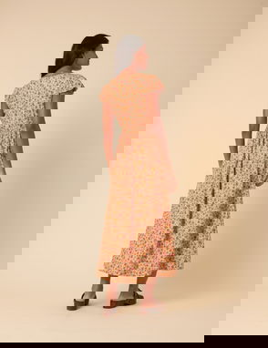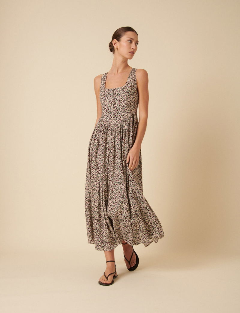 Cream Ditsy Floral Drop Waist Cora Midi Dress