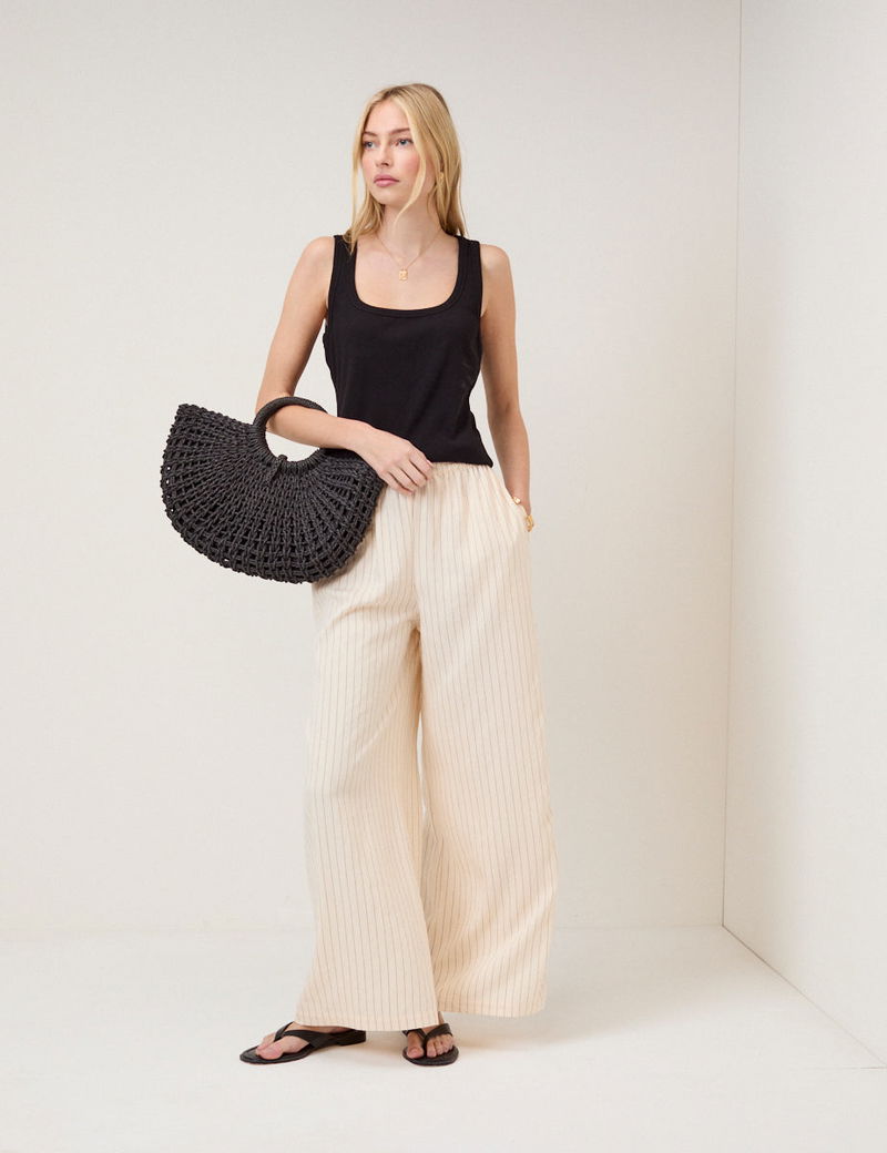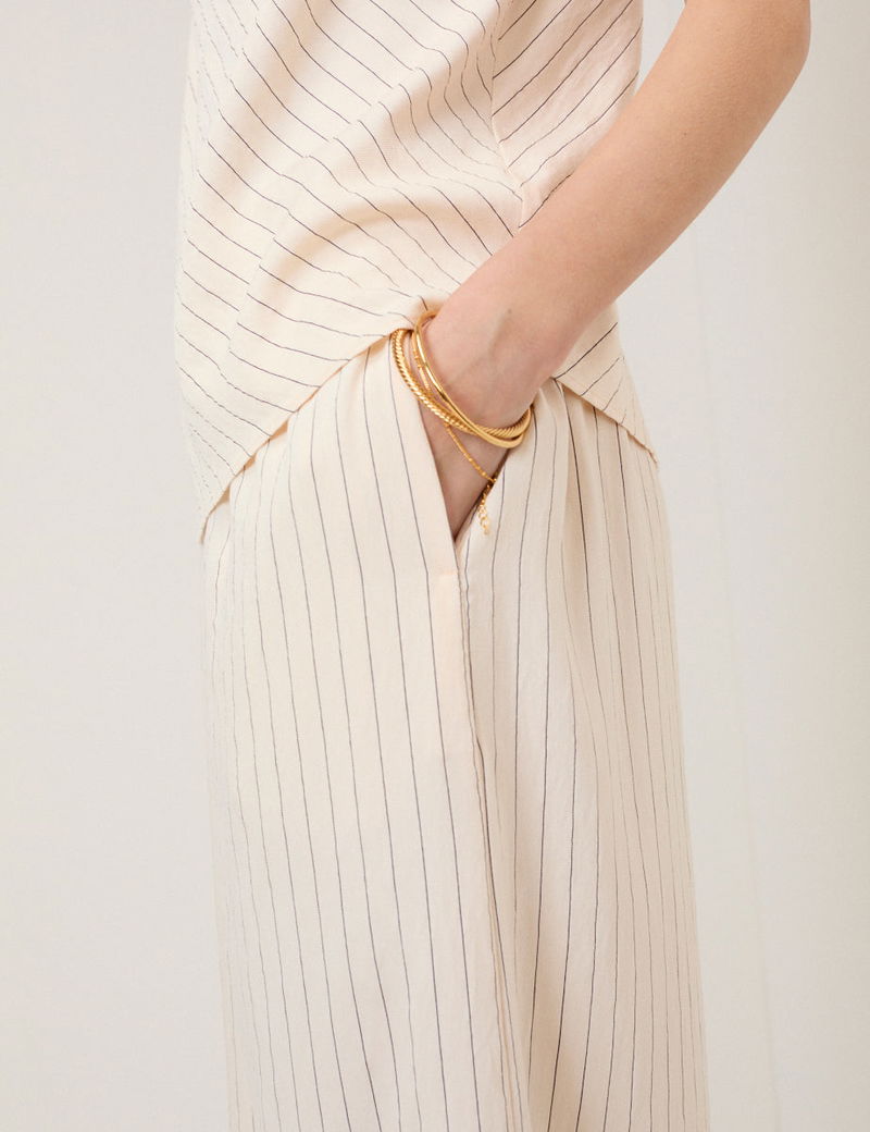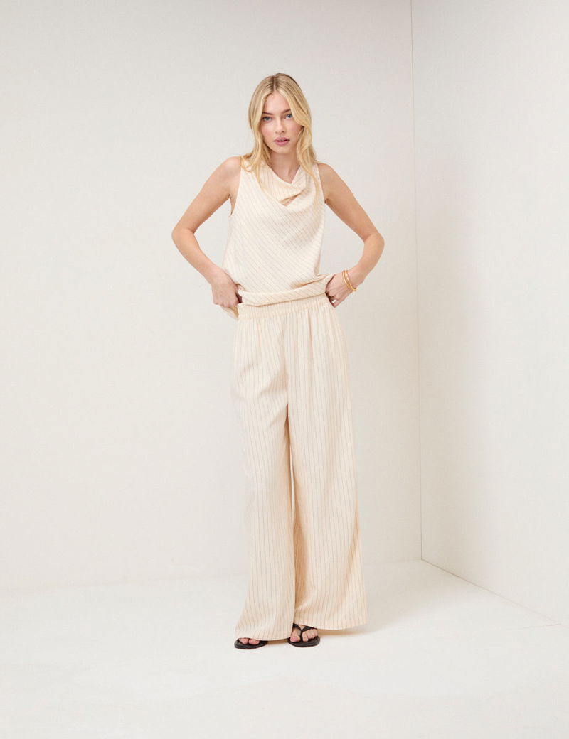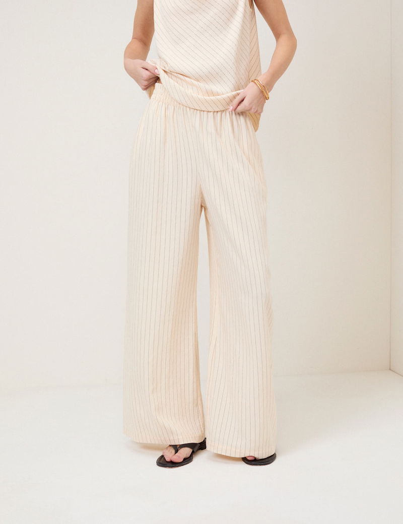 Cream Pinstripe Wide Leg Trousers