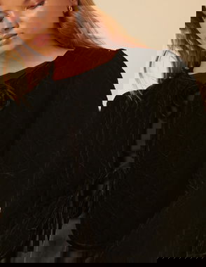 Cropped Velvet Quilted Jacket With Tie Front In Black