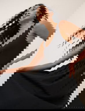 Description: Meet Dannie. We love the bandeau cut with a shirred bodice. She falls to an on-trend bubble midi skirt. Just add barely-there heels or sandals. Organic cotton is grown without the use of chemicals such as fertilisers and pesticides, helping to support healthier and more sustainable farming practices. Materials: 100% organic cotton Product Code: 113260797