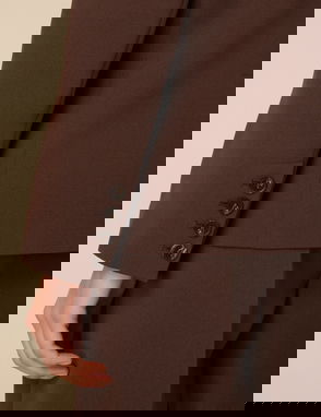 This deep plum blazer features a collar, long sleeves and double-breasted buttons. Cut to a relaxed fit, it's finished with flap pockets. Just add the matching trousers.