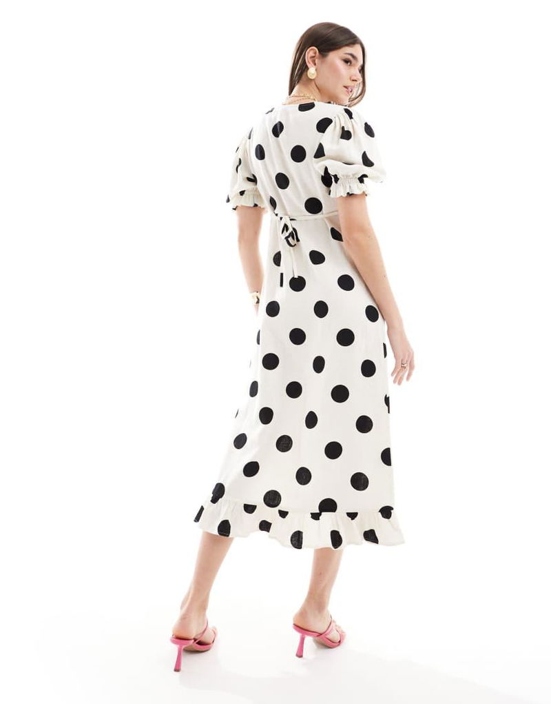 Let's hear it for the dress. V-neck Puff sleeves Tie waist Regular fit.