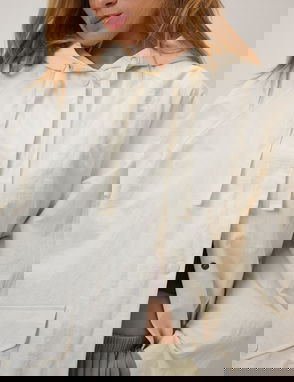 Crafted from soft cotton twill, this stone utility jacket features a collar, long sleeves and silver-toned popper buttons. Designed with an internal tie to cinch the waist, size up for a relaxed fit.