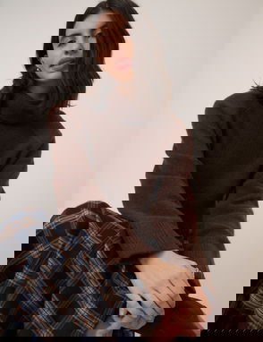 This green roll-neck jumper is knitted with a soft, cosy feel. Designed with long sleeves and ribbed trims, it’s cut to a relaxed fit with subtle side slits.