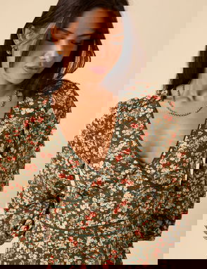 Geniveve Milkmaid Midi Dress In Cream Ditsy
