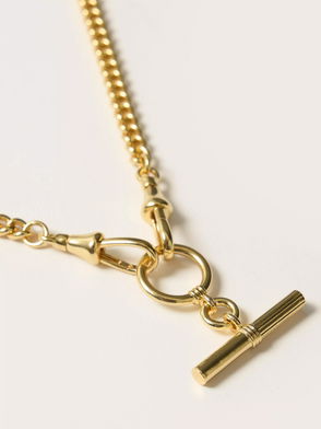 Designed with a link chain, this gold-plated necklace is finished with a T-bar pendant. Wear it with the matching bracelet.