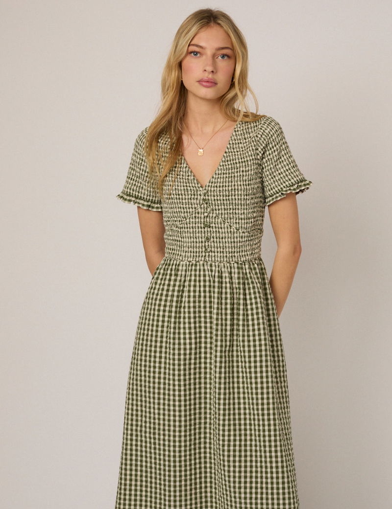Green Gingham Eliza Midi Dress