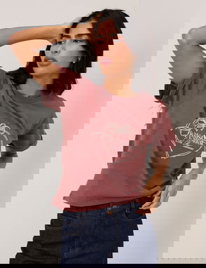 This khaki T-shirt features short, turn-up sleeves and a patch pocket embroidered with a white heart. Cut to a relaxed fit, the back reveals dainty NC embroidery.