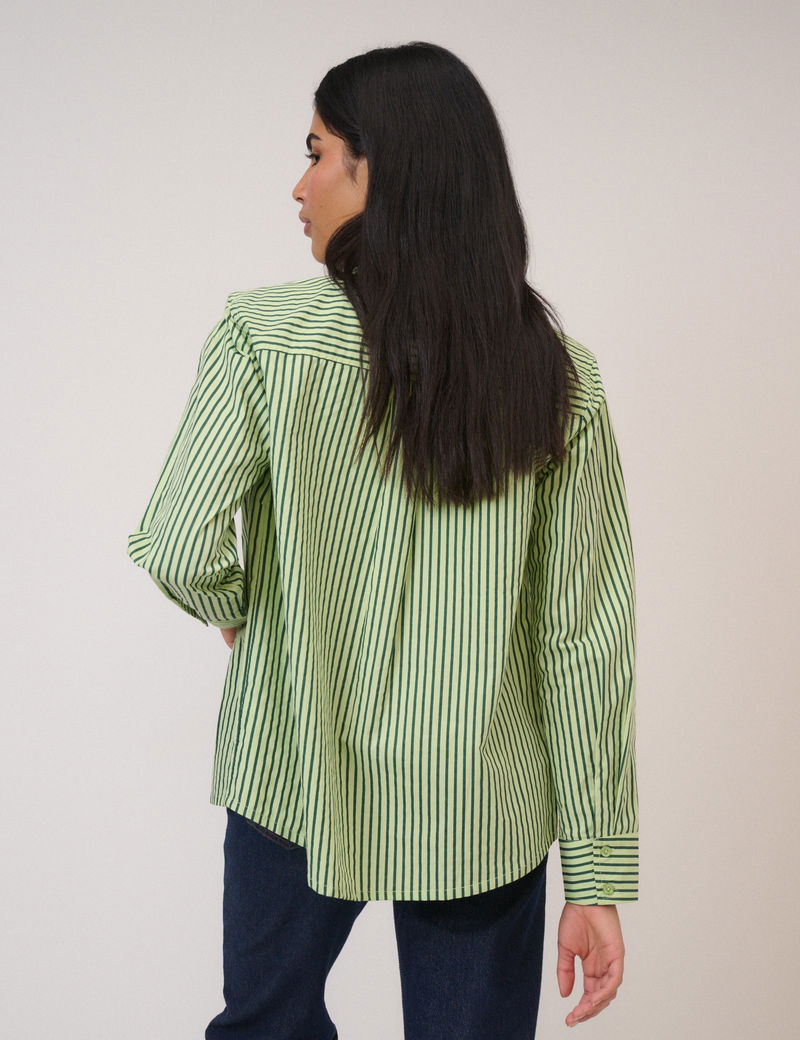 Crafted from soft pure cotton, this mint and forest green pinstriped shirt features a collar, long sleeves and buttons. Cut to a relaxed fit, it's finished with NC embroidery at the cuffs.