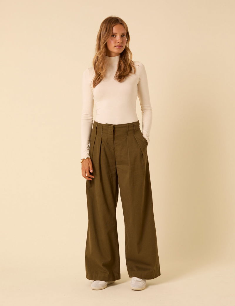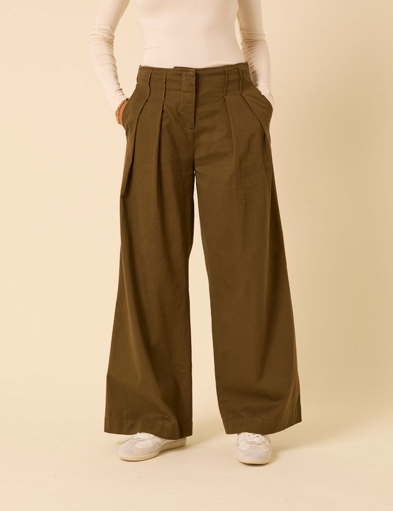 Green Pleated High-Waisted Trousers