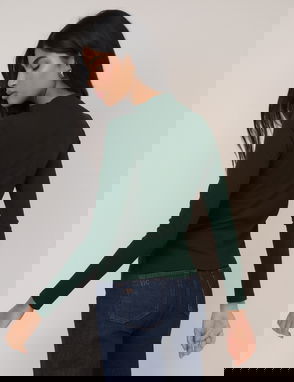 Softly ribbed, this khaki top features a round neck and long sleeves. It's cut to a slim fit with light stretch that makes it perfect for layering.