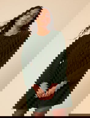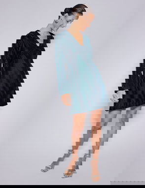 Green Satin Long Sleeve Frill Bella Mini Dress