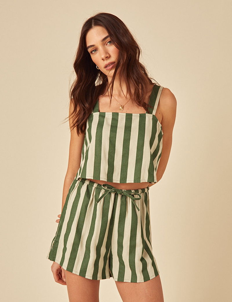 Green Striped Linen-blend Shorts