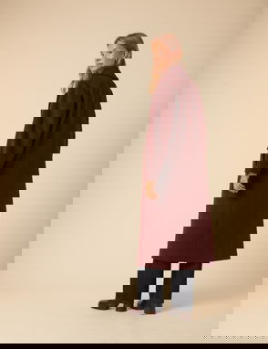 Soft-to-touch in an olive shade, this premium double-faced coat is complete with hand-finished seams. It features an on-trend scarf cape neck and a mock horn button front.