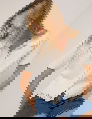 This soft, grey cardigan features a V-neckline with a detachable contrast white crochet collar. Cut to a slim fIt’s detailed with dainty bow buttons.